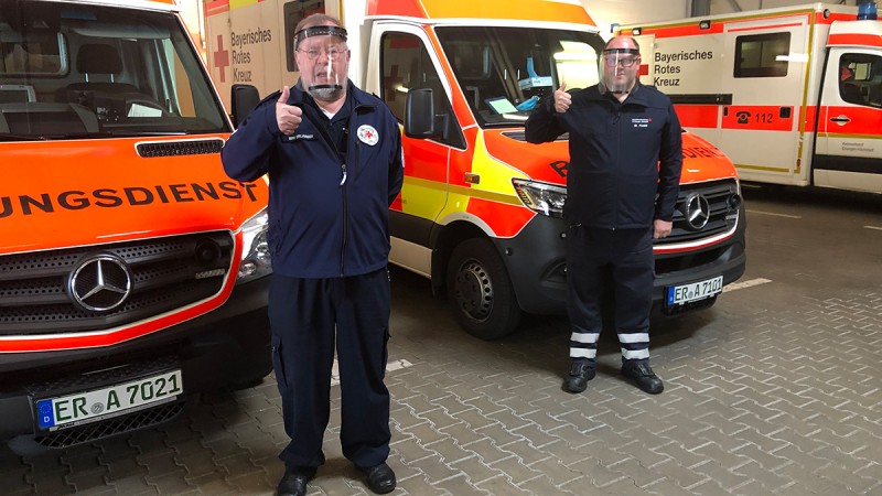 More than 200 such shields were produced in the Special Machinery department in Herzogenaurach using 3D printing. They are now being used on BRC and ASB emergency ambulances and rescue vehicles in the city and district of Erlangen.